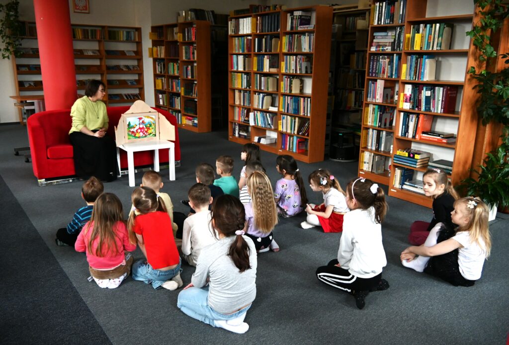 Na zakończenie spotkania przedszkolaki wysłuchały opowieści w formie japońskiego teatrzyku kamishibai, który, jak zawsze, wzbudził duże zainteresowanie i pozwolił przenieść się w świat wyobraźni. To było bardzo miłe i inspirujące spotkanie, które łączyło zabawę z książką oraz odkrywaniem fascynującego świata dinozaurów