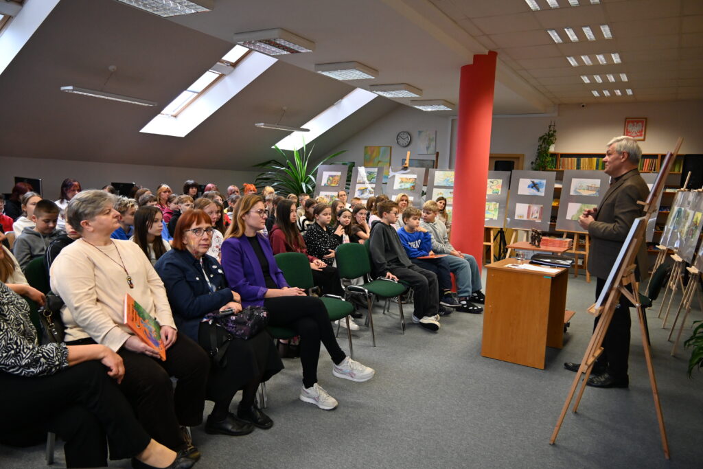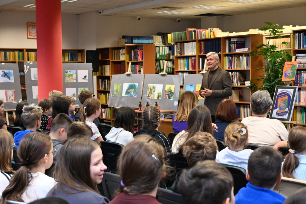 29.10 w Bibliotece Pedagogicznej odbyła się premiera książki „Ptaki, robaki, ryby, warzywa”, autorstwa Jerzego Gańki. Na spotkanie z autorem wierszy oraz ilustratorami przyszli uczniowie kl. 4b,5a, 5c, 5d ze Szkoły Podstawowej nr 3 im. Jana Pawła II w Mińsku Mazowieckim. Moderatorem spotkania był autor, pięknie poprowadził młodych słuchaczy przez wspomnienia z lat dzieciństwa, pierwsze próby literackie oraz najnowsze wiersze do nowej książki. Ilustratorzy czytali poszczególne wiersze oraz opowiadali o ciężkiej pracy artysty ilustratora, o technice jaką się posługują. Ilustratorzy książki to uczniowie z Liceum Sztuk Plastycznych im. E.M. Andriollego w Mińsku Mazowieckim z klasy 4 p: Olga Rogala, Julia Świątek. Łucja Adamczyk, Małgorzata Stańczyk, Gabriel Mroszczyk i Michał Zarzycki. Spotkaniu towarzyszy wystawa ilustracji którą można podziwiać w w Galerii Biblioteki II piętro.